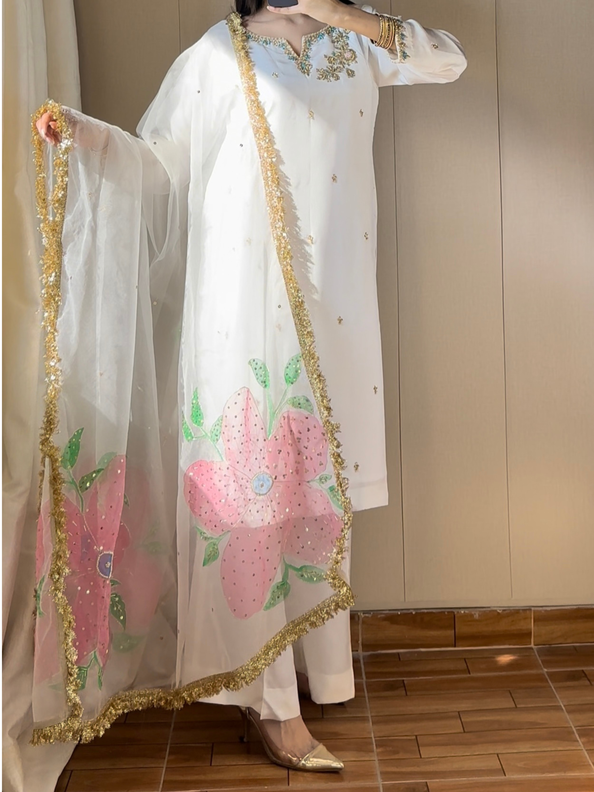 Fabric: Pure tusssle silk(shirt+trouser) & Dupatta(organza)